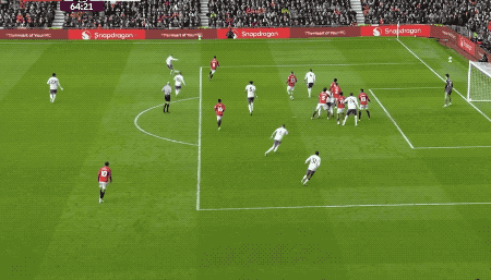 第53分钟,马丁内斯扑出姆伯莫的射门,曼联获得角球,B费主罚,卡塞米罗前点头球攻门,打破僵局。