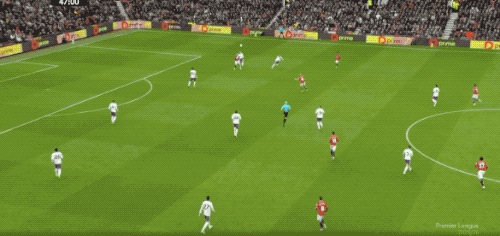第53分钟,马丁内斯扑出姆伯莫的射门,曼联获得角球,B费主罚,卡塞米罗前点头球攻门,打破僵局。